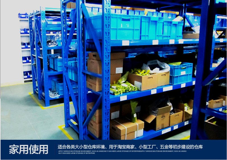 中(zhōng)型貨架適用於人工堆放作業,適用於存放輕(qīng)、小物品;常應用(yòng)於電子、服裝、醫藥(yào)、食品、電商倉儲、跨境電商配(pèi)送中心等領(lǐng)域。