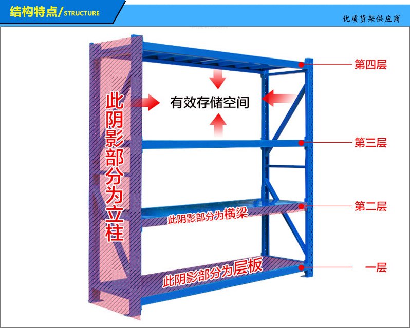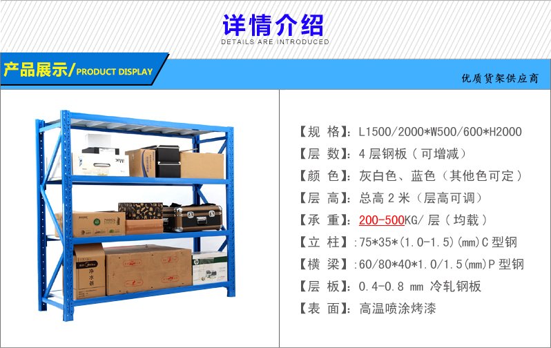 5、常用規格:L2000*D600*H2000mm,4層,每層鋪鋼(gāng)層板或木層板。